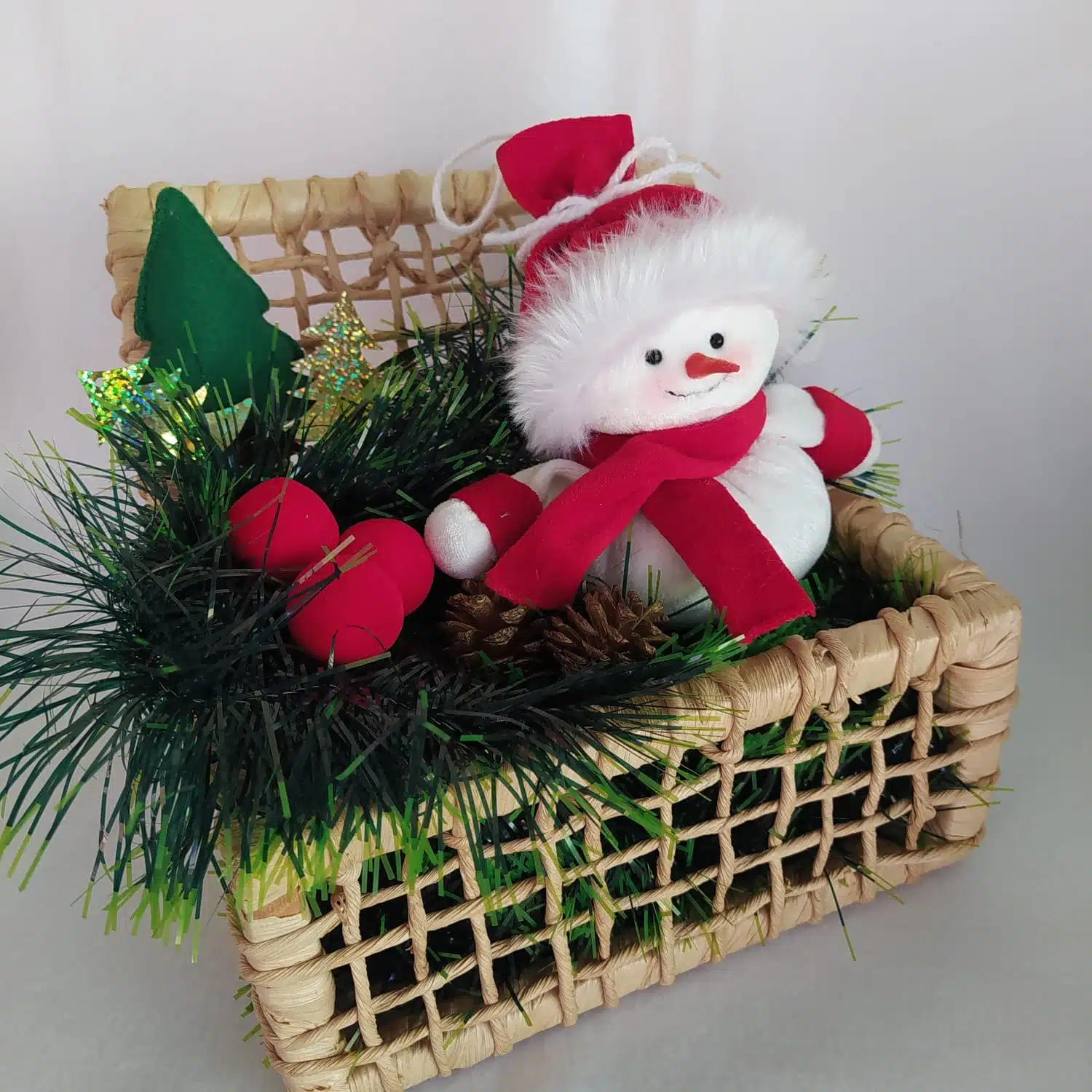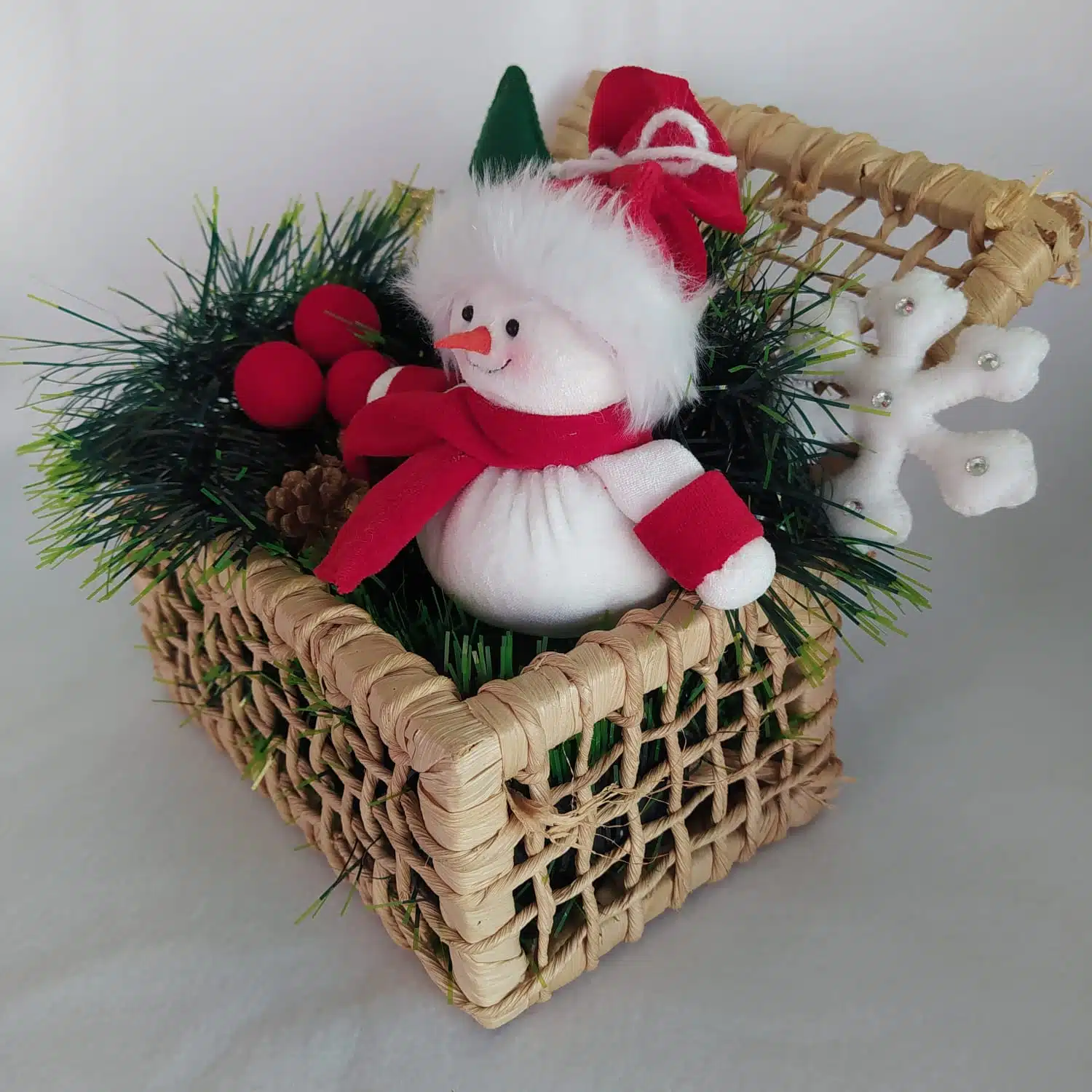 Este boneco de neve, cuidadosamente confeccionado à mão, é uma adição encantadora à sua decoração de inverno. Com sua tonalidade suave e detalhes feitos com carinho, o Boneco de Neve Vermelho evoca a serenidade e a magia da estação. Seu chapéu e cachecol acentuam o charme gélido, e seu sorriso acolhedor ilumina o ambiente.